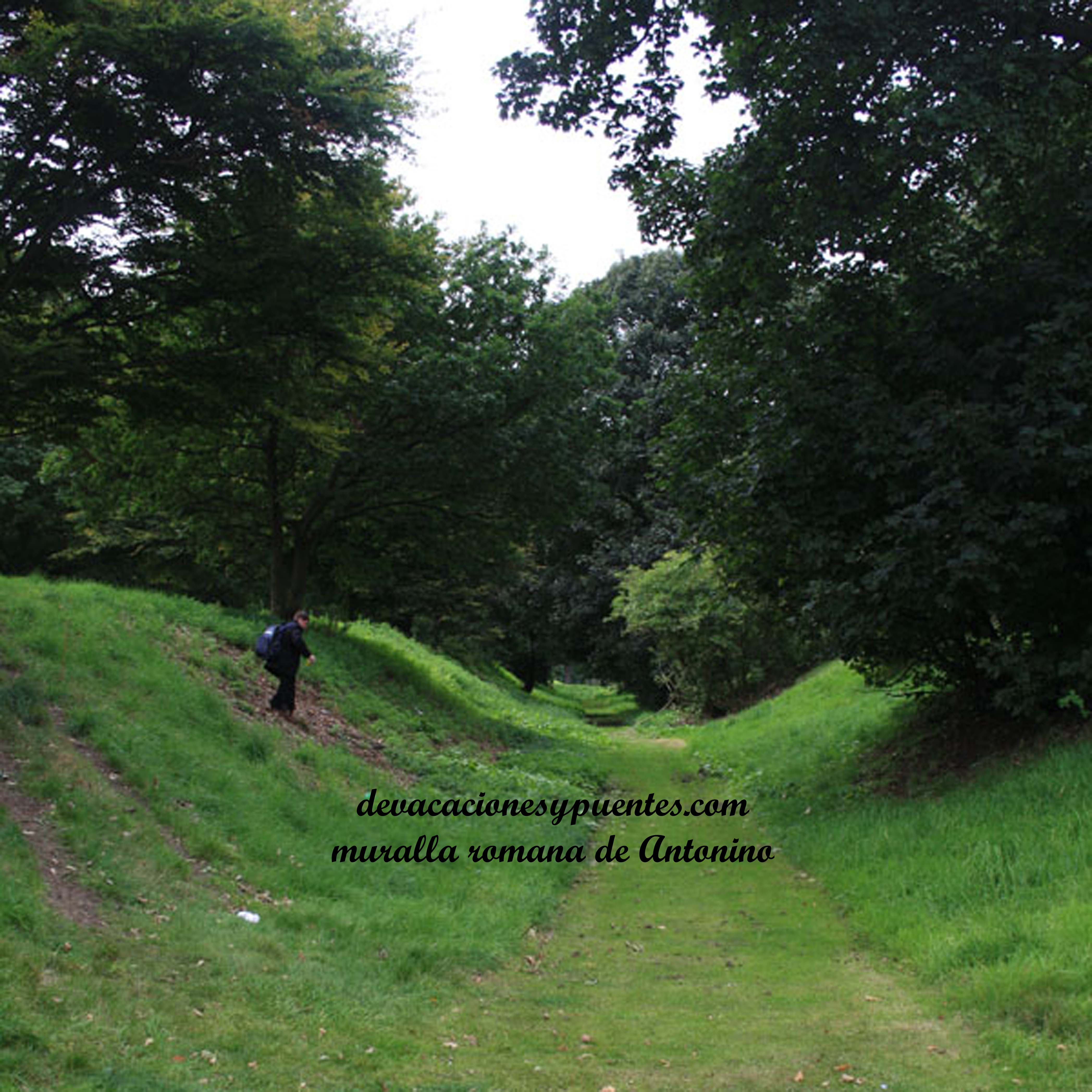 Tras Linlithgoow continuamos camino hasta Falkirk, donde visitamos Callendar house, una mansión del siglo XIV ubicada junto a un parque enorme donde están los restos de la muralla romana de Antonino. Eso sí, solo merece la pena buscarlos a quienes amen los árboles y los romanos, pues apenas queda de ella un montículo y un panel envejecido y sucio.