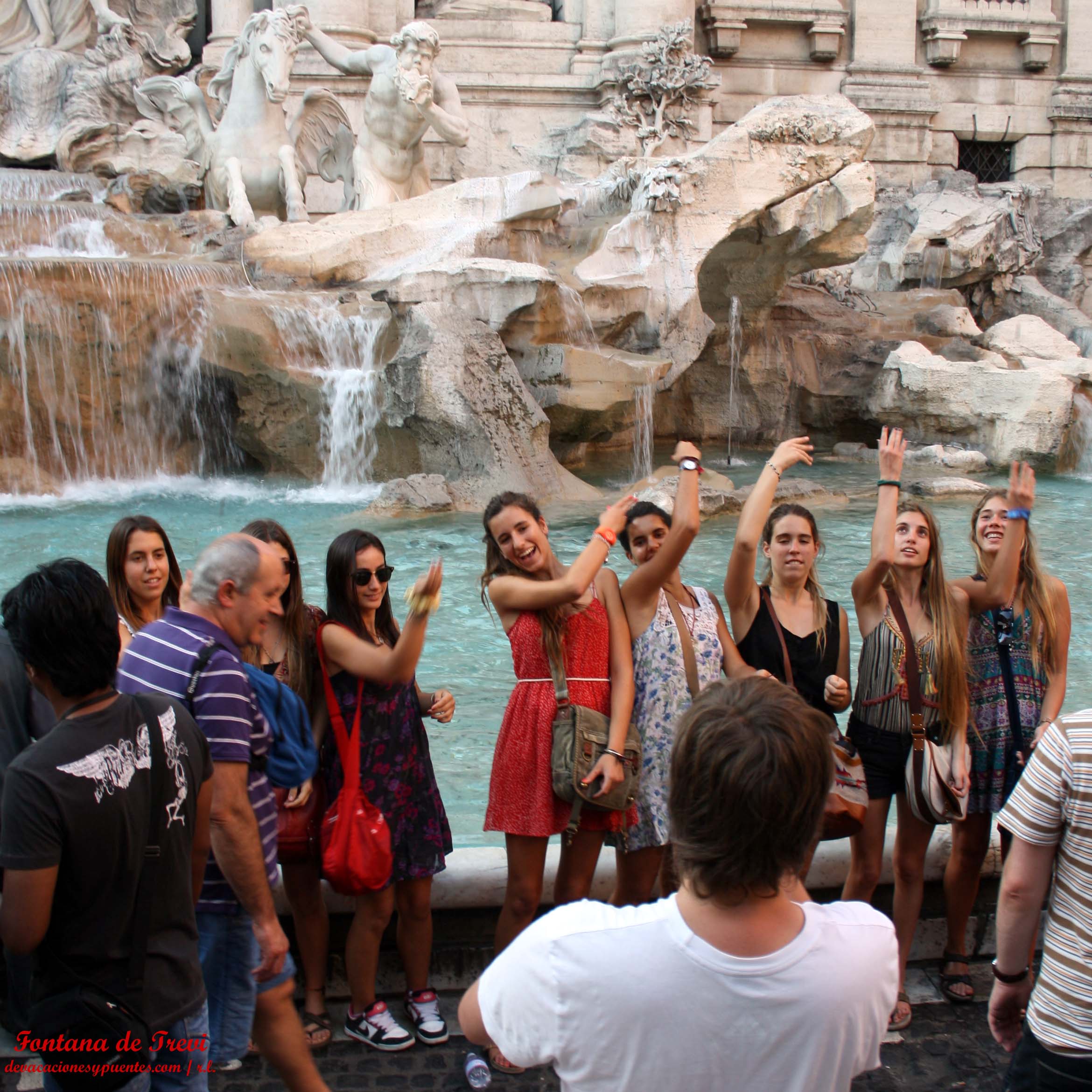 Con la ayuda de un mapa llegamos a la famosísima Fontana di Trevi, el “Ganges” de los peniques. Estaba tan abarrotada la plaza que nos costó llegar al borde de la fuente para tirar nuestra monedita (aunque deberían ser tres). Se supone que quien la arroja vuelve. Por si acaso también pedimos otro deseo… Como me quedé con las ganas de saber cuánto dinero se tira a la fuente con tanto turista y en qué se utiliza, comentar que según la recopilación que Wikipedia hace de noticias de la BBC, se recogen unos 3.000 euros diarios que se usan para fines distintos, algunos solidarios. Ah! la moneda se tira con la mano derecha sobre hombro izquierdo: