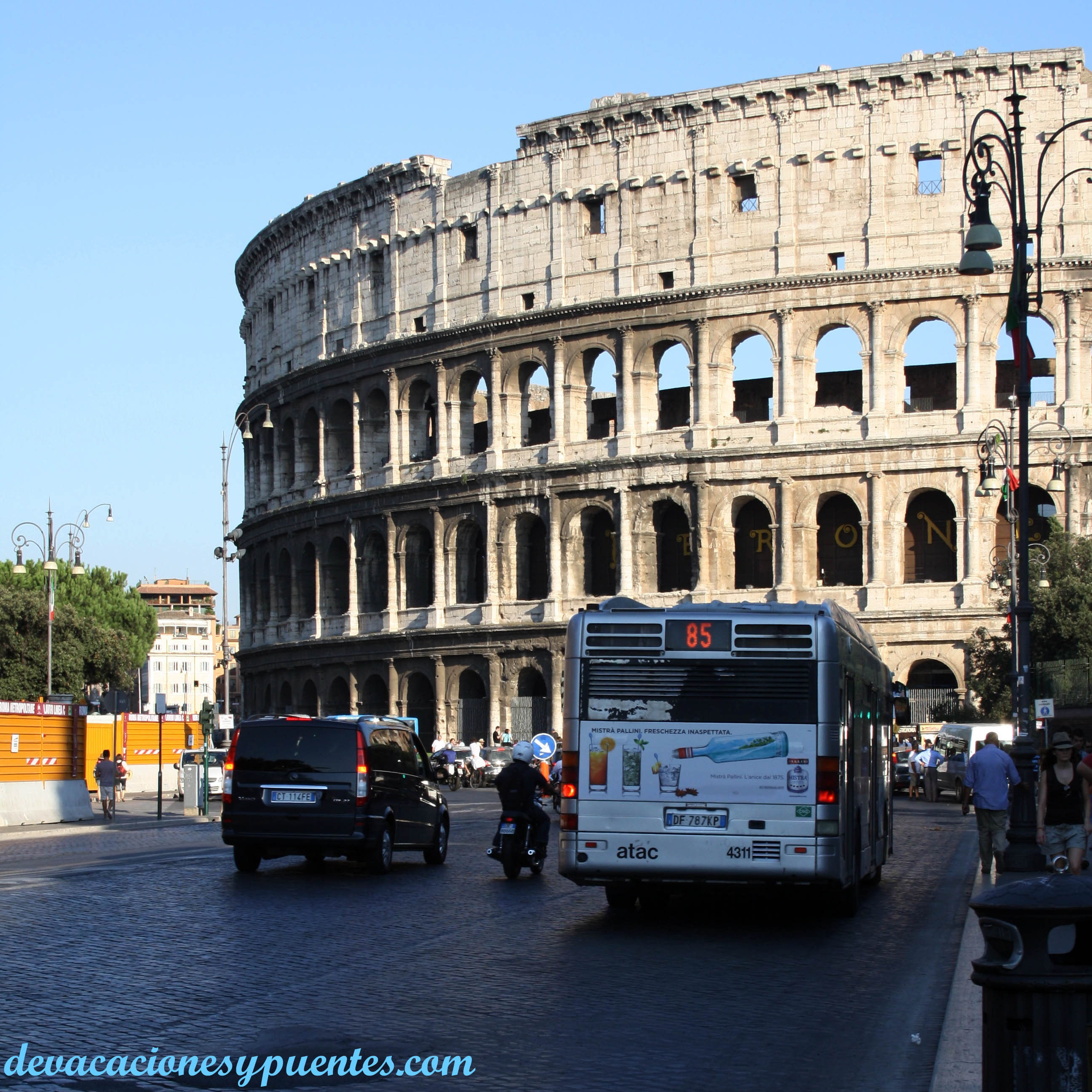 Tras dos horas y pico de viaje llegamos a Roma. De la estación fuimos al hotel andando. Estaba a un kilómetro, pero lo doblamos al callejear por la Piazza di Santa Maria Maggiore y la de Vittorio Emanuele II. El hotel era “La locanda del manzoni”. Lo reservamos en un buscador con una de esas ofertas “a ciegas” que no sabes qué hotel es hasta que lo compras (3 noches, 150 euros). El hotel, pequeño y confortable, era limpio y la única pega que tenía era el desayuno (algo escaso, sobre todo porque cuando quedaba poca bollería la recepcionista, algo entrada en carnes, la retiraba sin reponerla…). Tras dejar las cosas nos hicimos otros 2 kilómetros andando hasta el Coliseum…