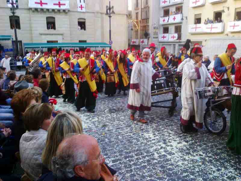 Amanece el domingo y me dispongo a imbuirme en plena Edad Media, son las 5 de la mañana y suena el despertador, él no quiere faltar a la cita y nos dirigimos al lugar, la plaza de España de Alcoy. No sé qué va a pasar pero la plaza está abarrotada. Hace frío pero me dan un “herberet” que da paso a un calor… A las 6 el repique de las campanas es ensordecedor, suena música y comienza lo que llaman “Diana” y por la hora tiene su lógica. Me explica que “salen todas las filaes, primero los cristianos, porque en unas horas comienzan a desfilar, y luego los moros, pero solo una escuadra de cada, hay tres puntos de inicio, primero…” pero no dejan de ser las 6 y el día se presenta algo más que largo y no deja de llegar más gente y más y más…