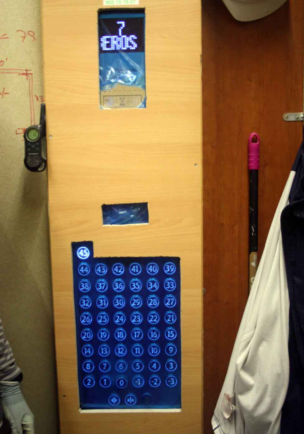 Pero esta vez ya había ascensor cerrado. En él respiré hondo y en menos de un minuto estaba en la planta 45 (ojo, que estaba en modo «bomberos», en modo «normal» apenas hubiera sobrepasado el medio minuto). Porque en este edificio hasta subir en ascensor es una experiencia, casi como el despegue de un avión, pues incluso notas una ligera presión en los oídos que se incrementa cuando bajas (y que se calma bostezando abriendo la boca exageradamente). En la ascensión, donde la presión se nota menos, no te das cuenta de la altura al toparte con un pasillo cerrado…