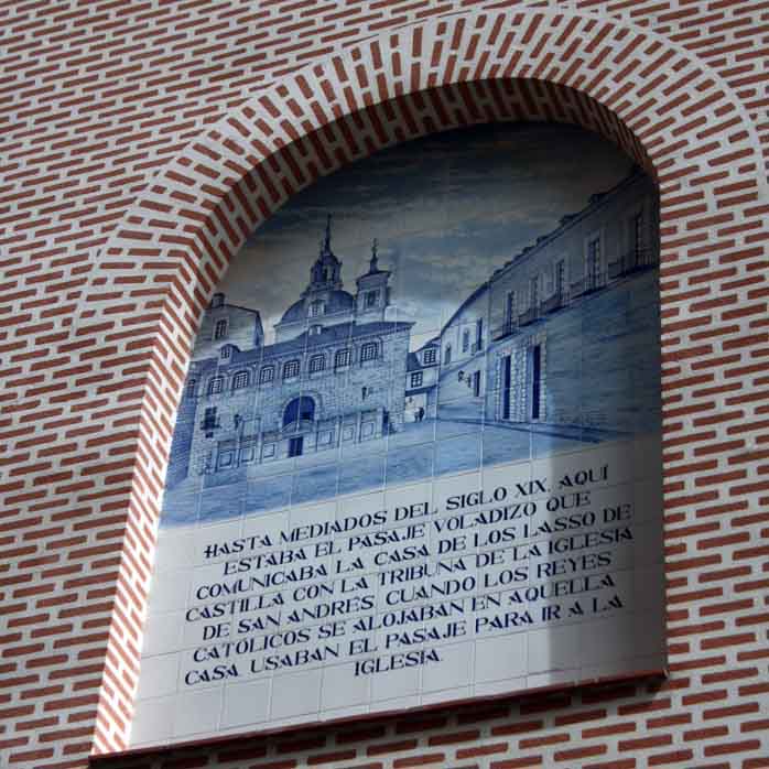 Continuamos por la calle de la Redondilla, entre cuyas casas figuran las que se construyeron para las 1.200 personas que atendían al rey Felipe II, hasta llegar a una iglesia que antaño estaba unida al palacete de un tal Lasso para que pudieran entrar directamente al templo, desde ella, los Reyes Católicos. La iglesia se llama San Andrés y lo más gracioso es que la he visto mil veces antes de reparar en el hueco del desaparecido pasadizo. Sin ton ni son, estábamos en la Latina.