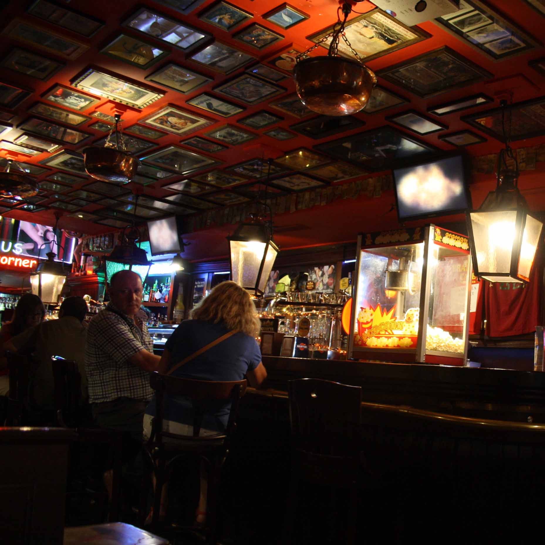 Salamanca de noche es tan bonita como por el día, al menos su casco antiguo. Por él fuimos de bar en bar hacia el hotel tras la intensa jornada turística. La primera parada fue en una perpendicular a la calle Compañía. Se llamaba Erasmus Bruin Café. Debe ser uno de los pocos lugares donde no te sirven tapa con la cerveza, pero también quizá el único del área donde encontrar fantásticas cervezas de importación a degustar en un local con una decoración muy chula, al estilo de los pubs holandeses. Con el estilo “nederland” saboreamos el caldo de cebada. Yo con una Chimay Roja y Carlos con una Grimbergen medio tostada tirada de barril. Pedimos de acompañamiento una ración de bravas a dos euros que estaban malísimas.