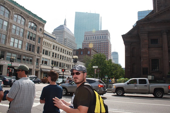 Del estadio subimos andando por Stainford St. y cogimos Cambridge Str. hasta que llegó al inicio de Charles Street, la calle de las tiendas situada en el barrio de Beacon Hill. Lo recorridomos de nuevo, nos tomamos una pinta para descansar en un pub llamado Sevens donde nos pusieron una generosa ración de nachos que llaman tortillas, y continuamos camino andando, bordeando el Boston Common Park, por Arlington St. hasta Boilston St (la avenida «Serrano» de Boston»).