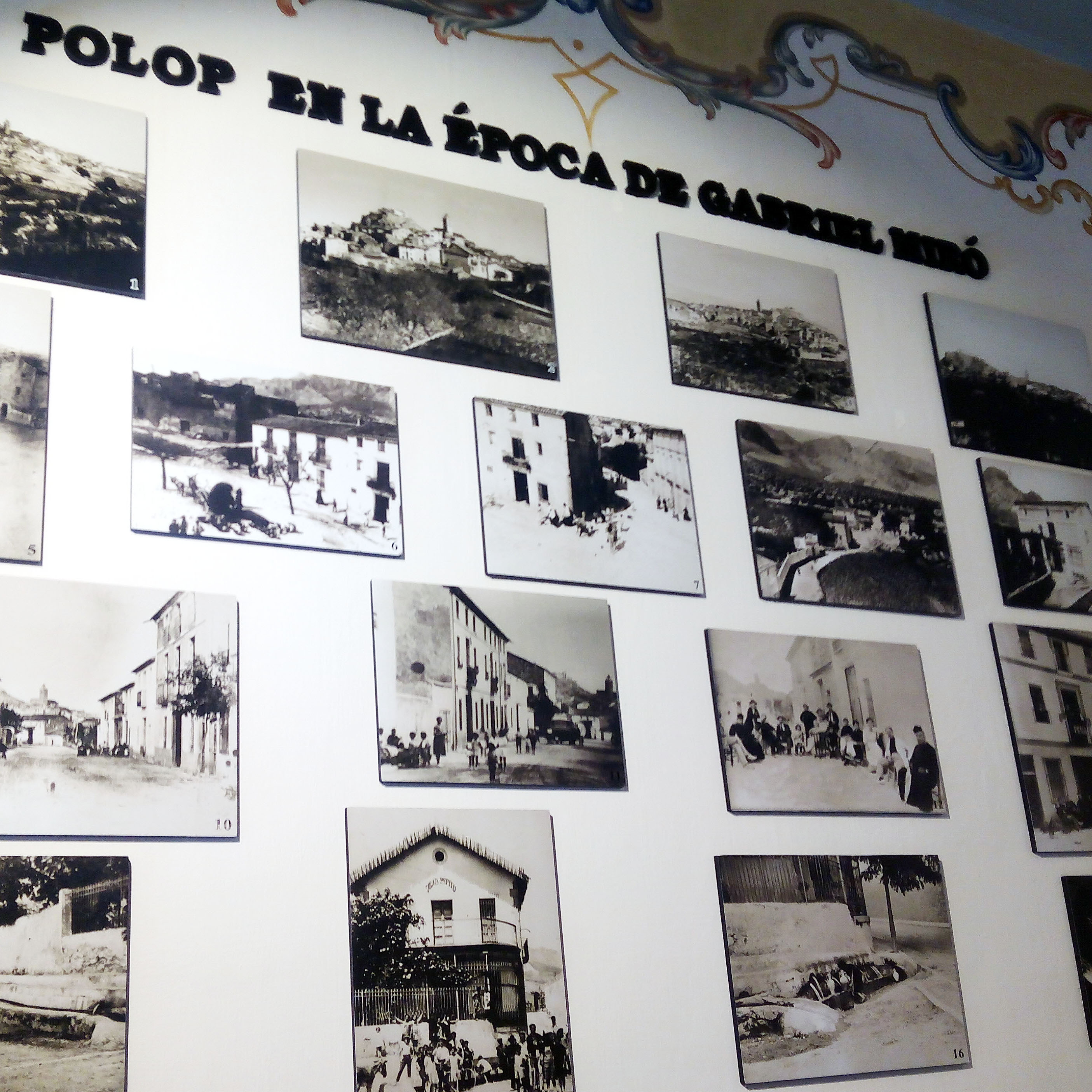 La pasión de Miró por Polop se comprueba nada más pasar el umbral de la puerta. En una pared está estampado un fragmento escrito por el escritor Dámaso Alonso. En él se lee: «Muchas veces Gabriel Miró me hablaba de Polop. Recuerdo una mañana muy clara en la casa última… la palabra del escrito era tan caliente, se coloreaba y exaltaba de tal modo, que a través de ella intuí y amé el lejano pueblo alicantino…».