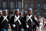 Hay tantos guardias y puertas, que el cambio dura hasta casi las doce y media. Cuentan que a veces, si está la reina, sale a verla, pues es el palacio en el que vive la familia real (cuya presencia o ausencia en el hogar se comprueba en función de si la bandera está o no izada).