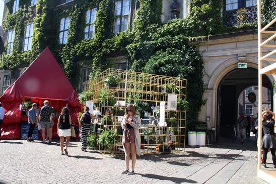 Desde aquí se puede entrar a Charlottenborg, un palacete convertido en uno de los mayores espacios dedicados al Arte Contemporáneo de Europa. Durante todo el año organiza eventos y exposiciones. Al coincidir con la Semana del Arte, disfrutamos con el ambiente que había en sus jardines, donde había montados chiringuitos muy molones, y curioseamos en lo que parecía una cuadra donde se impartía una charla sobre arquitectura de acceso libre.