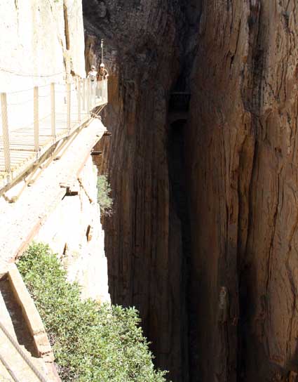caminito_del_rey9Lo más característico de la visita son dos pasarelas, una de 900 metros, tras la cual se camina kilómetro y medio por tierra, y una segunda pasarela, la más llamativa, de unos 600 metros.