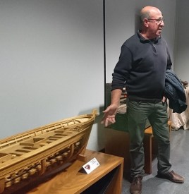 Por último la exposición muestra maquetas en madera de barcos antiguos de pesca de arrastre de la zona, así como una caja de herramientas de un carpintero de rivera o calafate, profesionales de los que quedan pocos, capaces no sólo de arreglar un barco sino de construirlo entero. El Sirero, aún activo del único astillero que queda en La Vila, explicó junto a Pere, armador jubilado, para qué se utilizaba cada herramienta, la utilidad de jarcias (aparejos y cabos) y cómo protegerlas en las zonas de más desgaste.