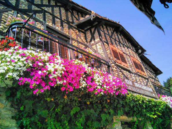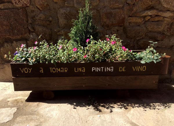 El primer pueblo que recomendamos es San Martín del Castañar. El parking está a la entrada del pueblo, de recorrido fácil a pie. Al inicio un gran cartel marca los puntos de interés: plaza mayor, plaza de toros, puente, iglesia con su campanario como pegado como superpuesto al resto del edificio… pero es el conjunto de todo, entretejido con cuidadas casitas llenas de flores, lo que hace a San Martín del Castañar un lugar de obligada visita. También es divertido por los letreros, en madera (ya sean carteles o macetas) que rescatan dichos populares de lo más pintorescos.