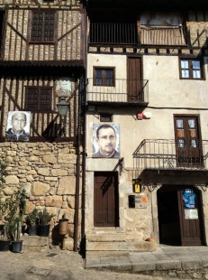 Mogarraz aguarda unos kilómetros más adelante como un pequeño tesoro escondido. Un pequeño folleto adelantaba que se diferenciaría de las otras poblaciones porque sus edificios tienen más granito y sus calles muchas escaleras y pasadizos. No decía lo que más llama la atención: los rostros de sus vecinos. No los de ahora, los que antaño fueron jóvenes y posaron para sacarse fotos para los DNI que necesitaban para emigrar a trabajar a Francia o Alemania… Unas fotos rescatadas muchos años después por un artista local, que las estampó en las fachadas pintándolas sobre chapas que, a buen seguro, ya no se descolgarán.