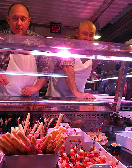 De ahí pasamos a las tapas que más nos gustaron, las del puesto de «Menjar per a emportar a taula«, con unas tostas y unos bolletes saladitos que estaban de vicio. El vino, un Marqués de Turia aceptable. Ya en el tercer puesto llegamos al mejor vino, servido por el puesto del «Rincón del Catador» con sus Laderas del Seque. Los chicos del puesto ofrecieron además unas tapas al mismo nivel que el vino, y quedamos encantados con el hojaldre de queso de cabra con cebolla caramelizada al vinagre de higo y las «lunas» de morcilla con manzana.